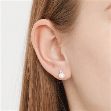 Ørestikker i 14 karat Hvidguld med perler og diamanter