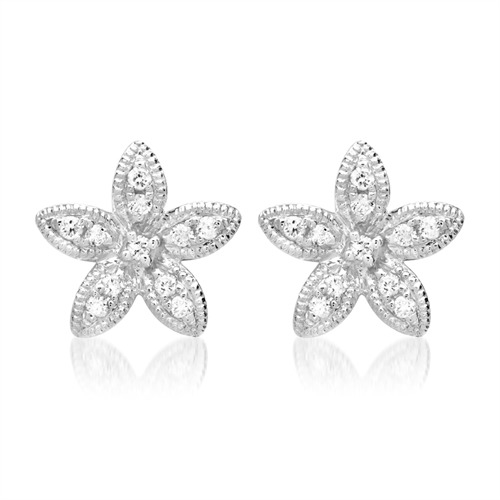 Ørestikker med smukke blomster besat med 22 funklende diamanter