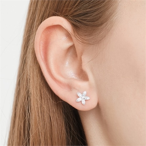 Ørestikker i 18 karat Hvidguld med blomster