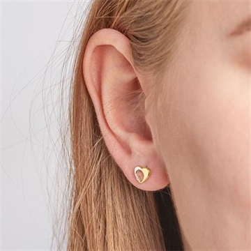 Ørestikker i 8 karat Guld og Hvidguld med hjerter