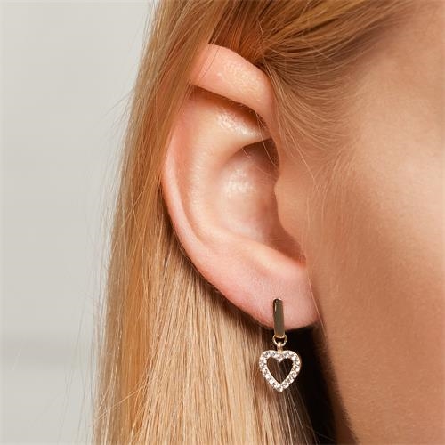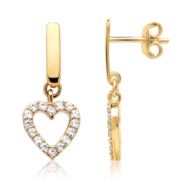 Øreringenes overflade er poleret og hjerterne er besat med funklende zirkonia sten