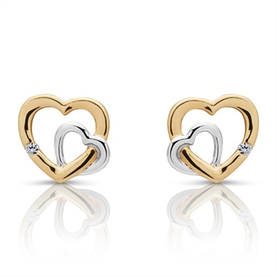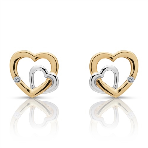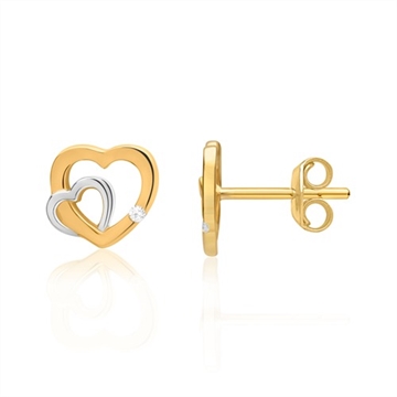 Ørestikker i 8 karat Guld og Hvidguld med dobbelte hjerter