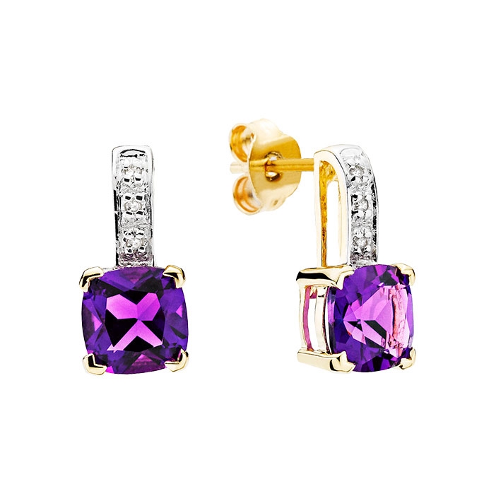 Ørestikker i 8 kt. Guld m. Ametyst & Diamanter