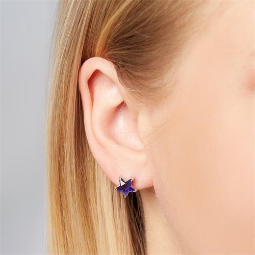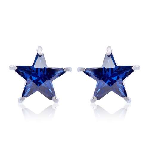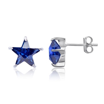 Stjerneformet ørestikker i Sølv med blå zirkoniasten
