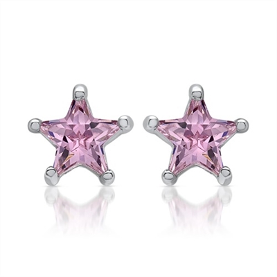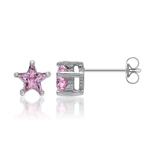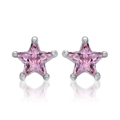 Stjerneformet ørestikker i Sølv med pink zirkoniasten