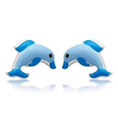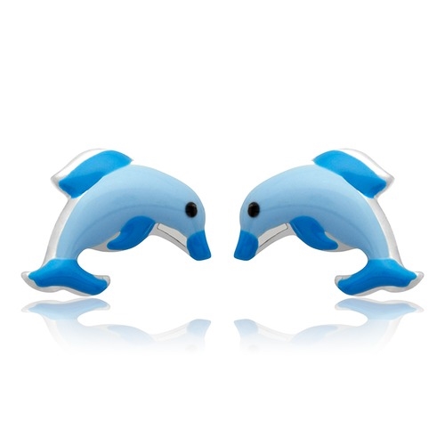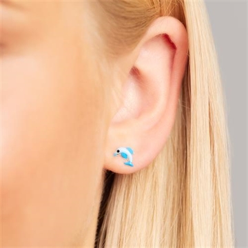 Yndige ørestikker i Sølv til piger med blå delfiner