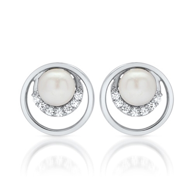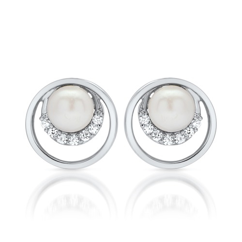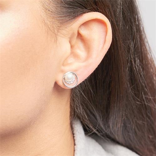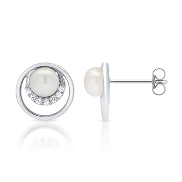Runde ørestikker i Sølv med perler og funklende zirkoniasten