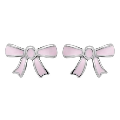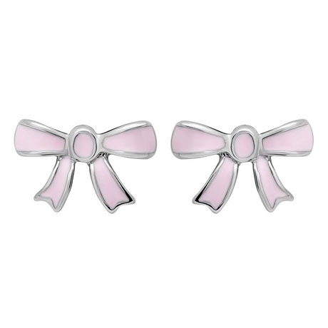 Ørestikker i Sølv med små lyserøde sløjfer