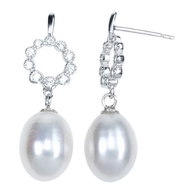 Ørestikker i Sølv med ferskvandsperler og zirkonia