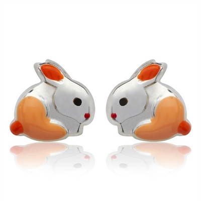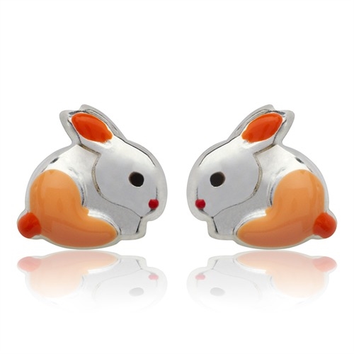 Ørestikker i Sølv med orange kaniner