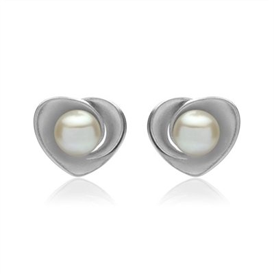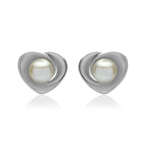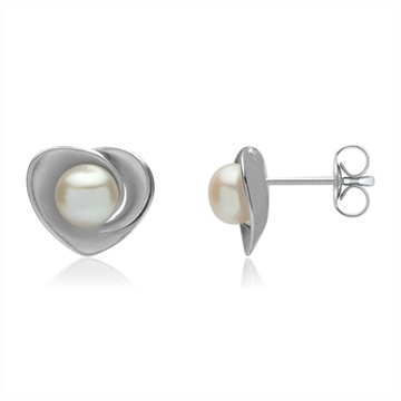 Hjerteformet rhodineret ørestikker i Sølv med perler