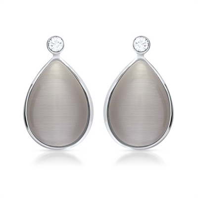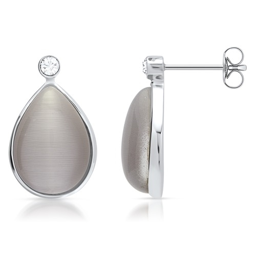 Ørestikker i sølv med grå Cat-Eye perler