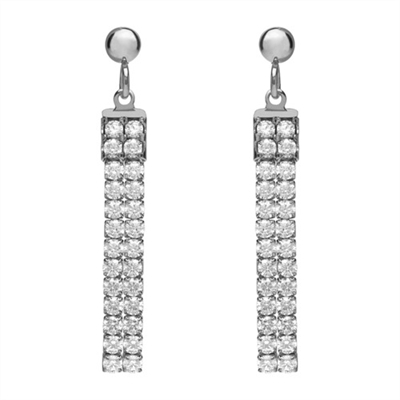 Øreringenes overflade er poleret og med 2 rækker af hængende funklende zirkoniasten