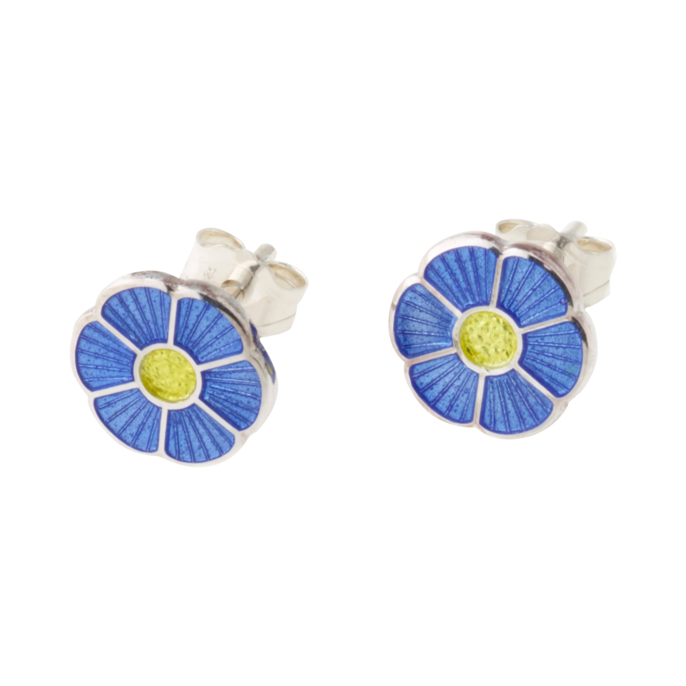 Ørestikkernes overflade er med blå og gul emalje