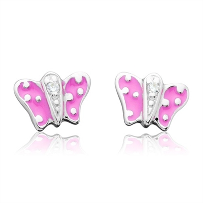 Ørestikker i sølv med lyserøde sommerfugle