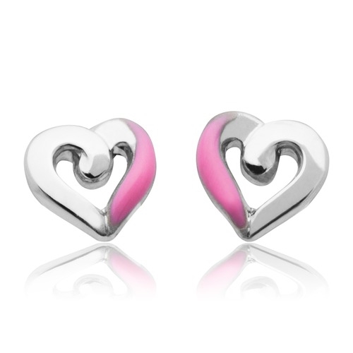 Ørestikker i sølv med delvis lyserøde hjerter