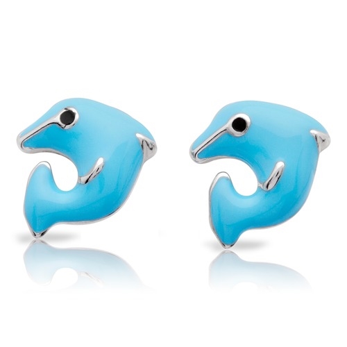 Ørestikker i sølv med blå delfiner