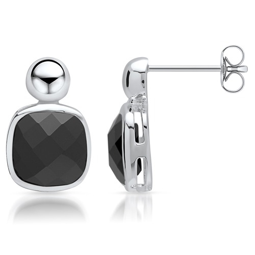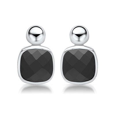 Ørestikker med sorte glassten i sølv