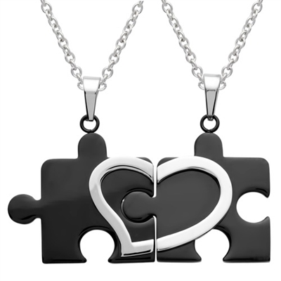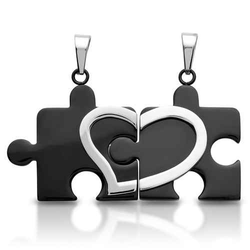 Parhalskæder med sorte brikker og hjerte i stål