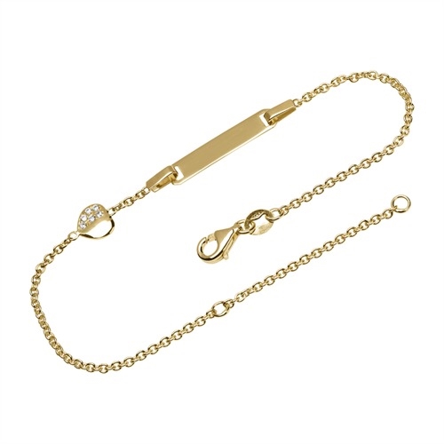 Yndigt pigearmbånd med hjerte og lasergravering. Hjertet er besat med funklende zirkoniasten