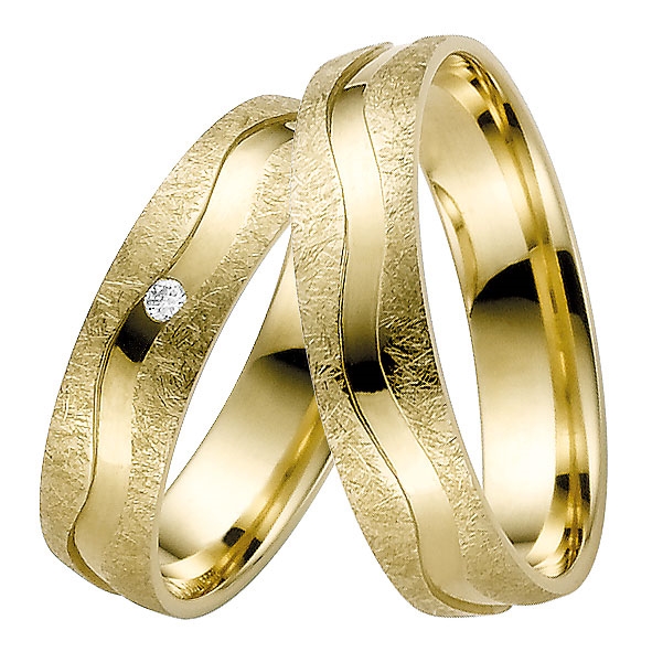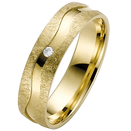 Vielsesringe i guld med 0,02 ct. w/si diamant fattet i dameringen