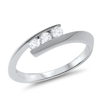 Ringen er i svejende design og med 3 hvide facetslebne diamanter