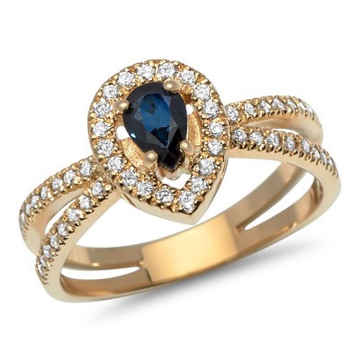 Ring i 14 kt. Guld m. safir og diamanter