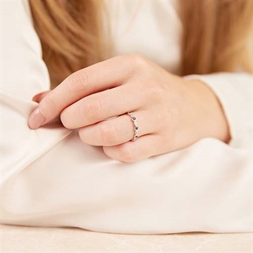 Ring i 14 karat Hvidguld med diamanter og safir