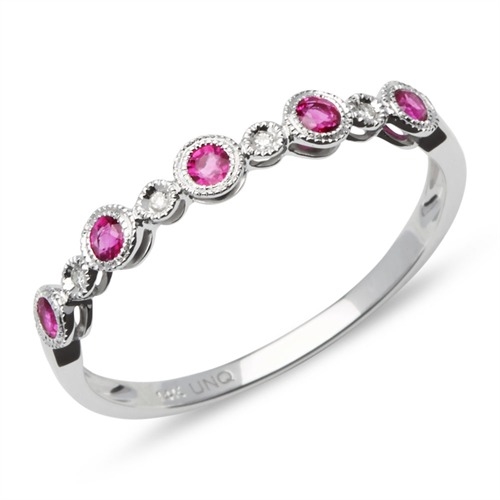Ring i 14 karat Hvidguld med diamanter og rubiner