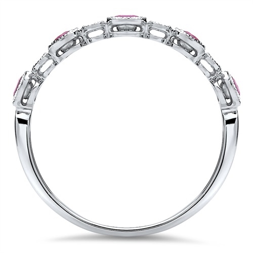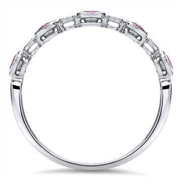 Ringen er besat med 4 runde diamanter og 5 runde rubiner