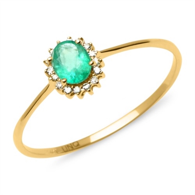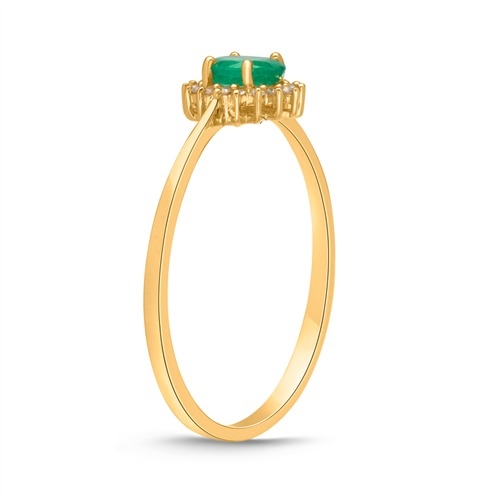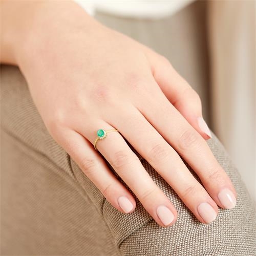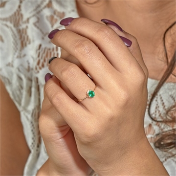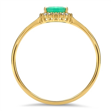Elegant ring i 14 karat Guld med diamanter og smaragd