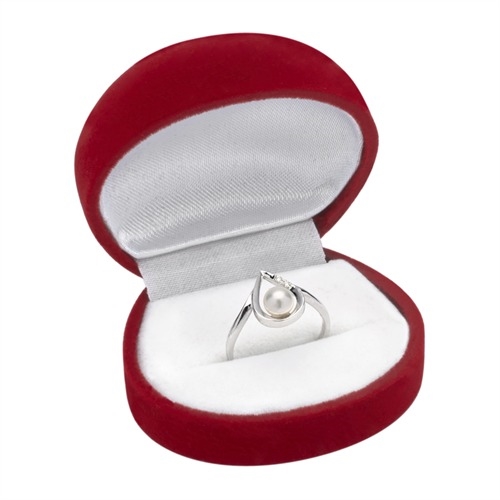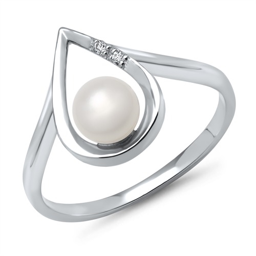Dråbeformet ring med skinnende perle og 2 hvide funklelende diamanter