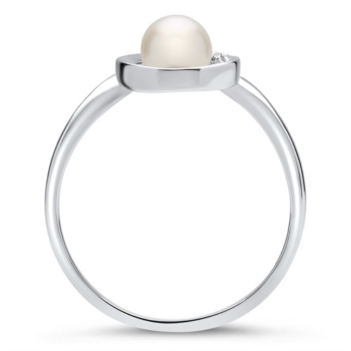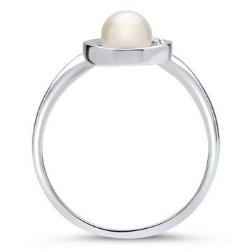 Ring i 14 karat Hvidguld med perle og diamanter