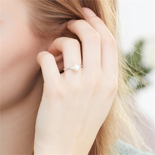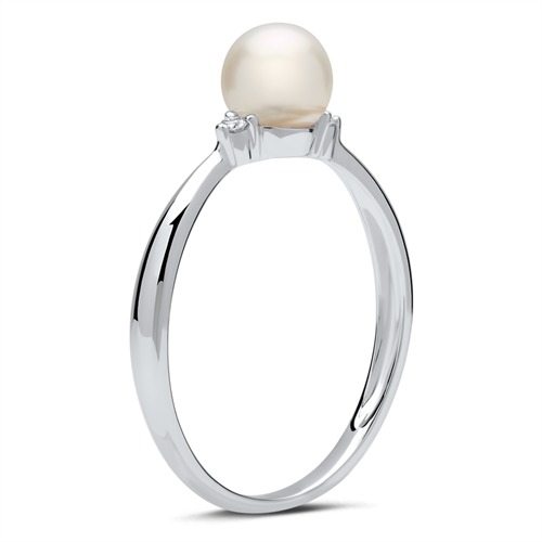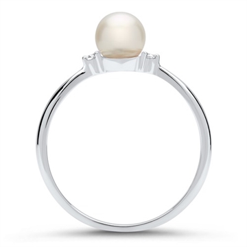 Ring i flot desgin med perle og 2 funklende hvide diamanter