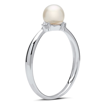Ring i 14 karat Hvidguld med perle og diamanter