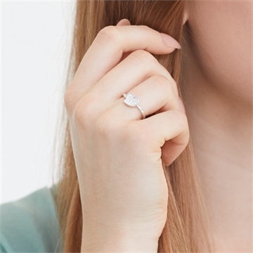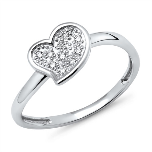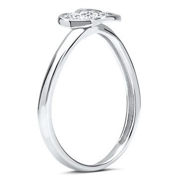 Ring i 14 kt. Hvidguld m. hjerte & Diamanter