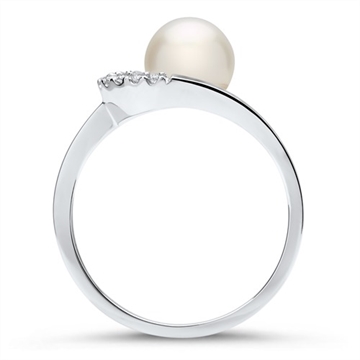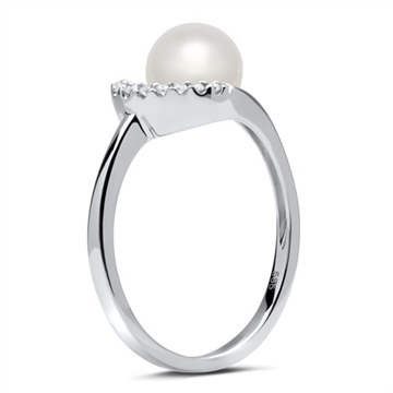 Ring i 14 karat Hvidguld med diamanter og perle