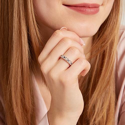 Ring i eksklusivt design med 4 funklende diamanter og 5 safirer