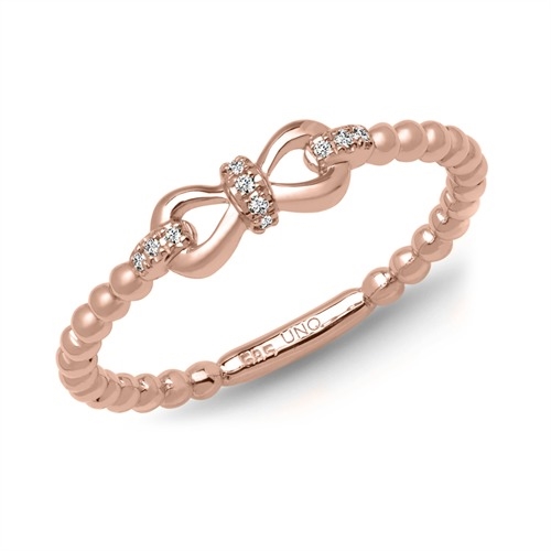 Ring i flot kugledesign med diamantbesat sløjfe. Ialt 11 hvide funklende diamanter