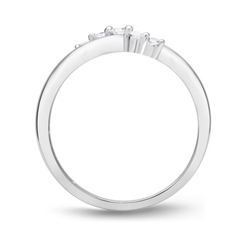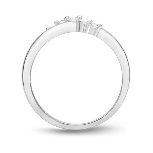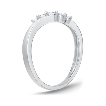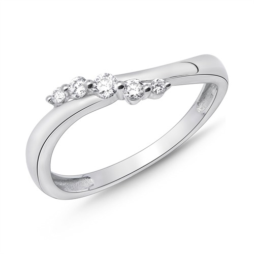Ring i flot svejende desig besat med 5 hvide funklende diamanter