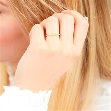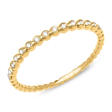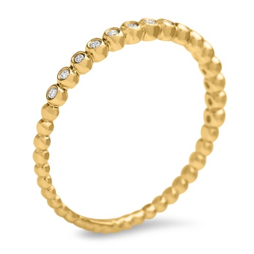 Ringen er med små kugler sat tæt sammen, hvor de 15 øverste er besat med diamanter
