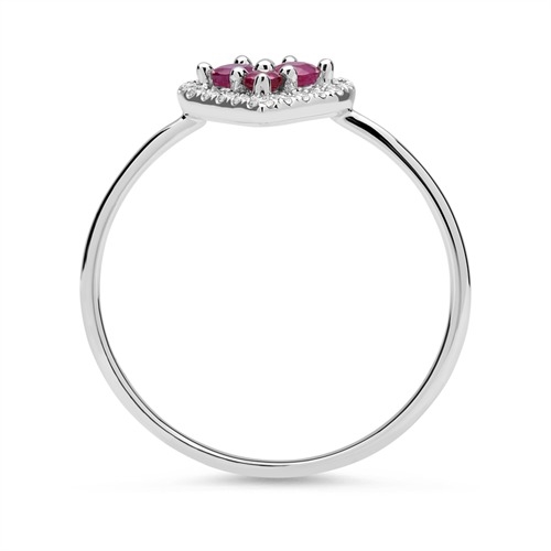 Hjertet er besat med 20 funklende hvide diamanter og 3 rubiner