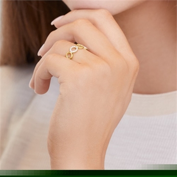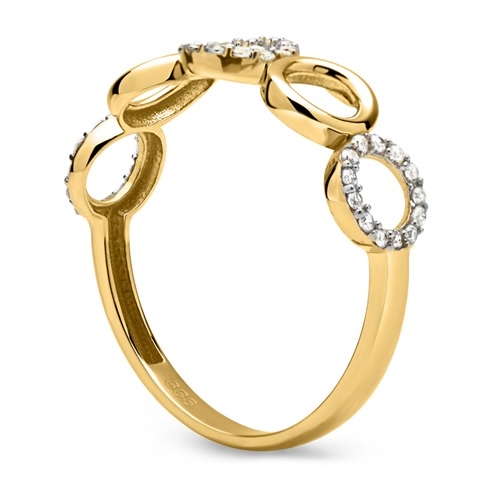 Ring i flot design med 5 runde ringe. Ringene er skiftevis besat med og uden zirkoniasten