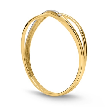 Ring i flot design i et mix af guld og hvidguld med en zirkoniasten