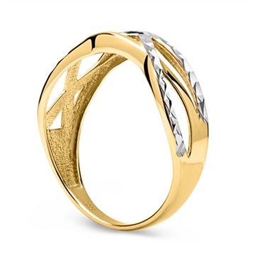 Ringen er i et flot mix af guld og hvidguld, en rigtig Eyecatcher