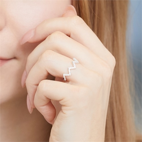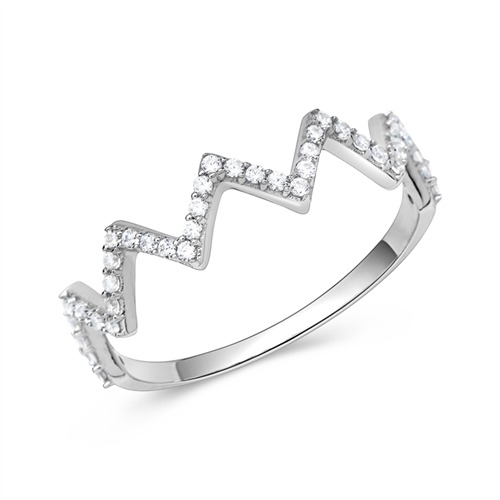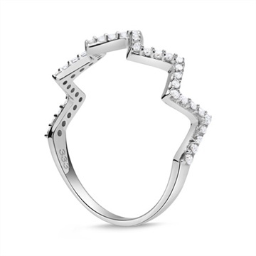 Ring i flot Zig Zag design besat med funklende zirkoniasten