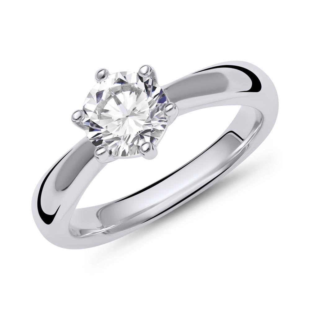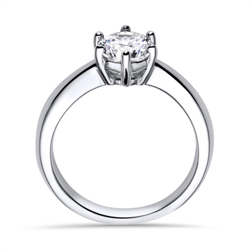 Ringen er med en rund facetsleben zirkonia sten med en diameter på 6,2 mm. Stenen sidder i en fatning med 6 grapper