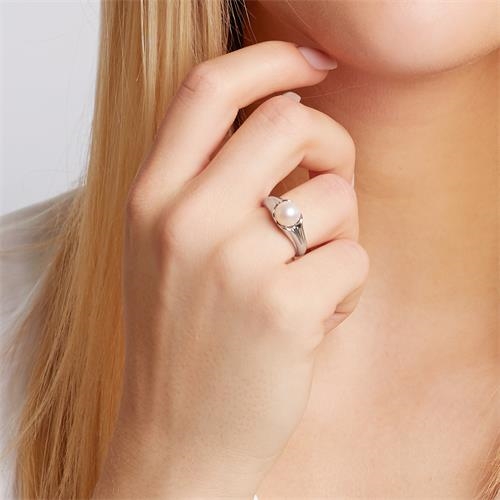 Ring i Sølv med perle