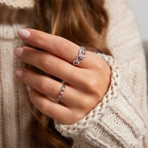 Ringen er med 5 hjerter, hvor det ene er besat med funklende zirkoniasten