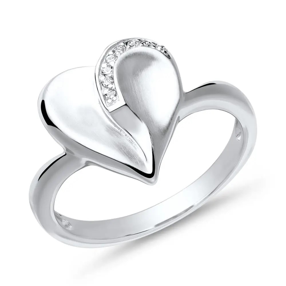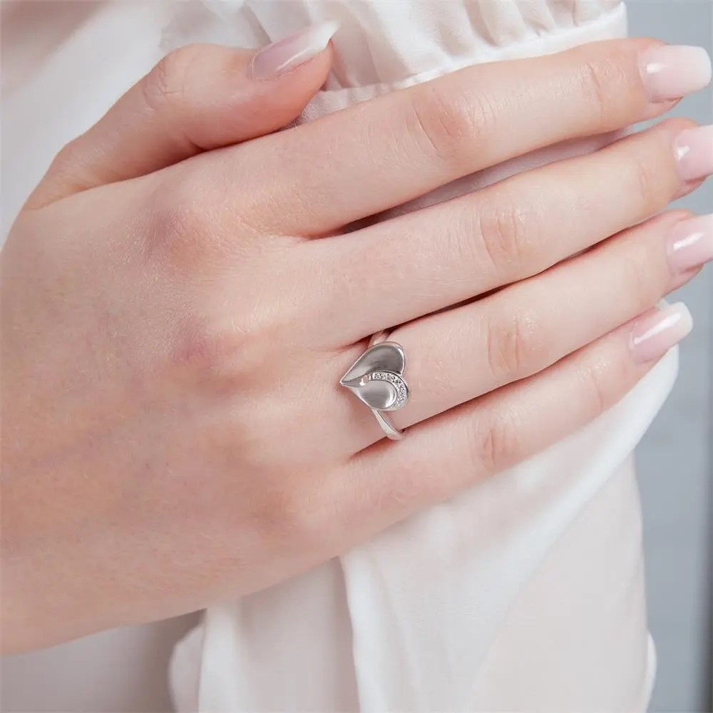 Delvis poleret fingerring i sølv med hjerte